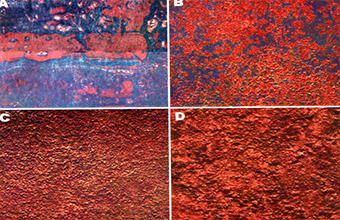 Structural steel elements in new structures are usually either hot rolled sections or fabricated plate girders. The initial steel surfaces normally comply with rust grades A or B according to BS EN ISO 8501-1[1]. Material that is pitted, i.e. rust grades C or D, should be avoided if possible, since it is difficult to clean all the corrosion products from the pits during surface preparation. Descriptions of rust grades A to D are as follows A - Steel surface largely covered with adhering mill scale, but little if any rust B - Steel surface which has begun to rust and from which mill scale has begun to flake C - Steel surface on which the mill scale has rusted away or from which it can be scraped, but with slight pitting under normal vision D - Steel surface on which the mill scale has rusted away and on which general pitting is visible under normal vision